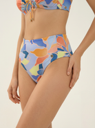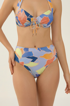 Flatter every curve in the Waterlily Ruched Waistband Full Classic Pant. Gentle ruching at the waistband smooths and sculpts for a seamless silhouette, paired with full classic coverage that balances comfort and confidence. Bold floral patterns intertwined with geometric shapes shimmer subtly on the fabric your poised, pattern-forward partner for any Waterlily top, from tranquil tides to twilight walks.