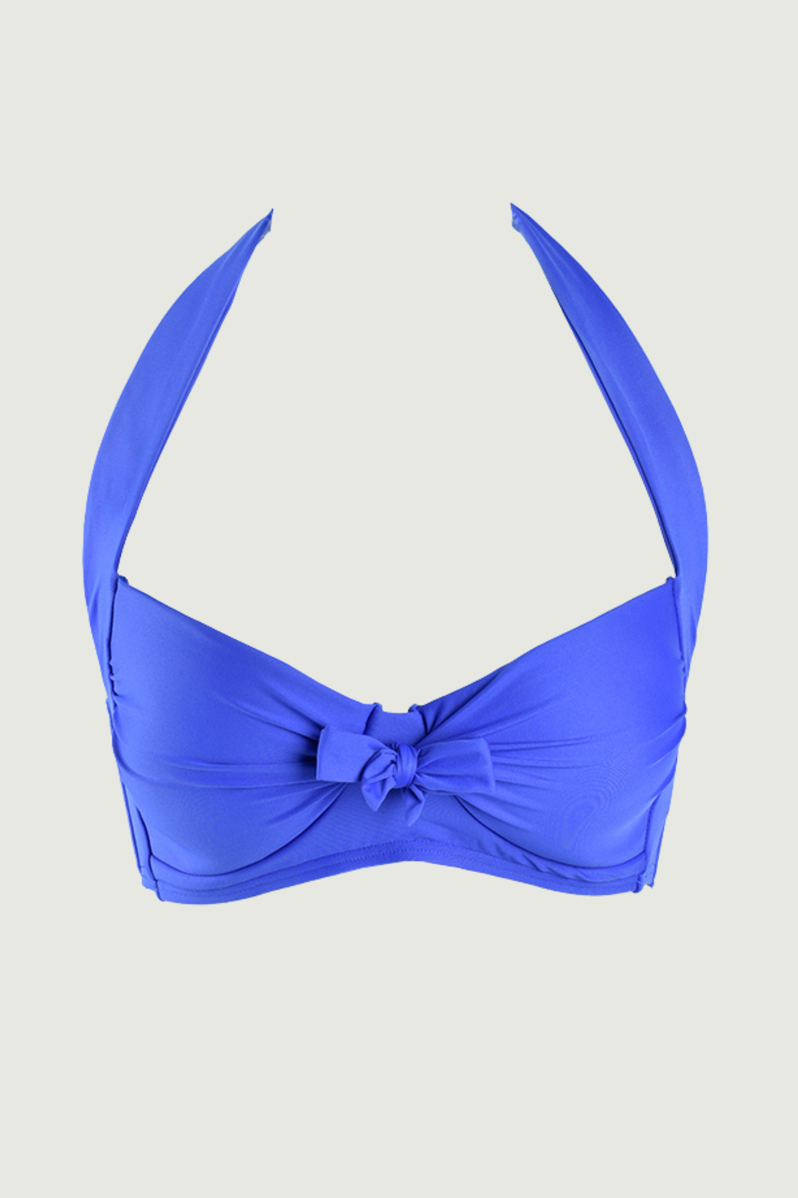Core Solid Dazzling Blue Tie Front Halter Bikini Top