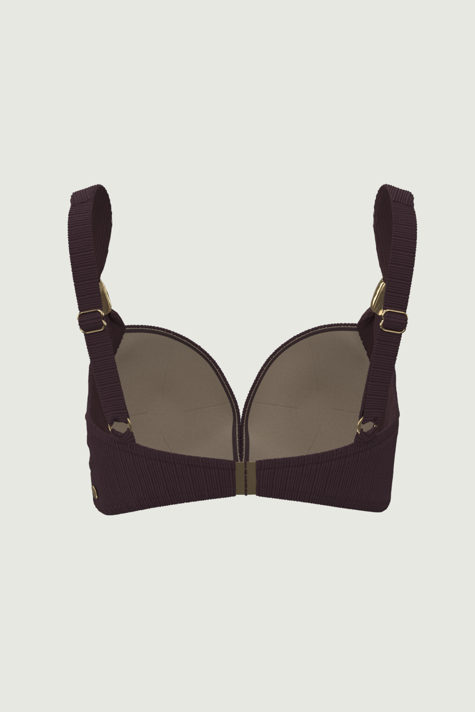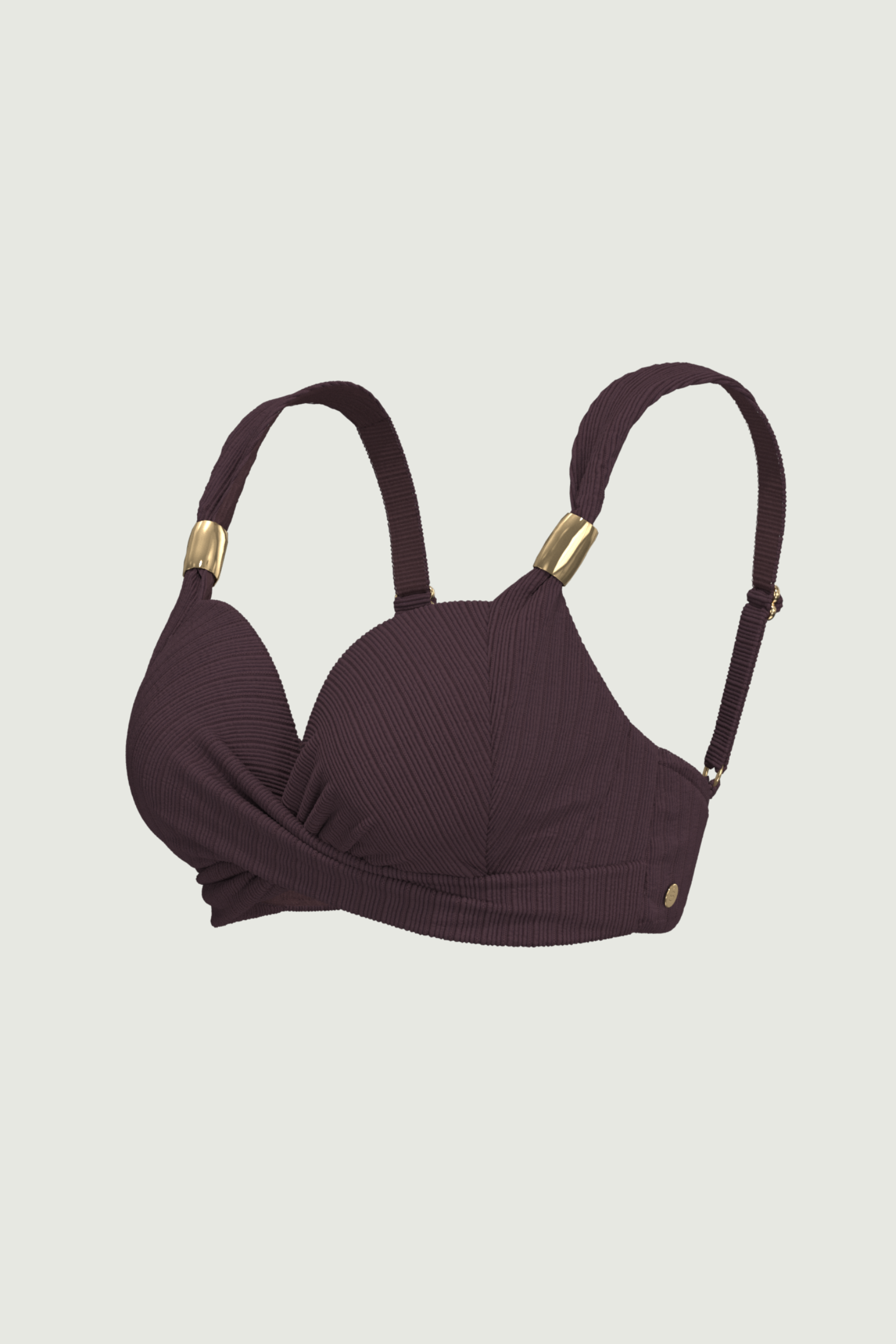 Command attention with the Maja Plus Cup Ring Strap Cross Front Top. Engineered for fuller busts (D/DD), moulded cups offer precise lift and shaping beneath a sleek cross-front overlay. A signature flat long hoop elegantly encircles the straps for a modern, architectural accent that blends structure with sensuality. Solid fabric with horizontal mini ribbed texture ensures a tactile, refined feel your bold statement piece for poolside poise.