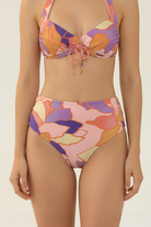Flatter every curve in the Waterlily Ruched Waistband Full Classic Pant. Gentle ruching at the waistband smooths and sculpts for a seamless silhouette, paired with full classic coverage that balances comfort and confidence. Bold floral patterns intertwined with geometric shapes shimmer subtly on the fabric your poised, pattern-forward partner for any Waterlily top, from tranquil tides to twilight walks.