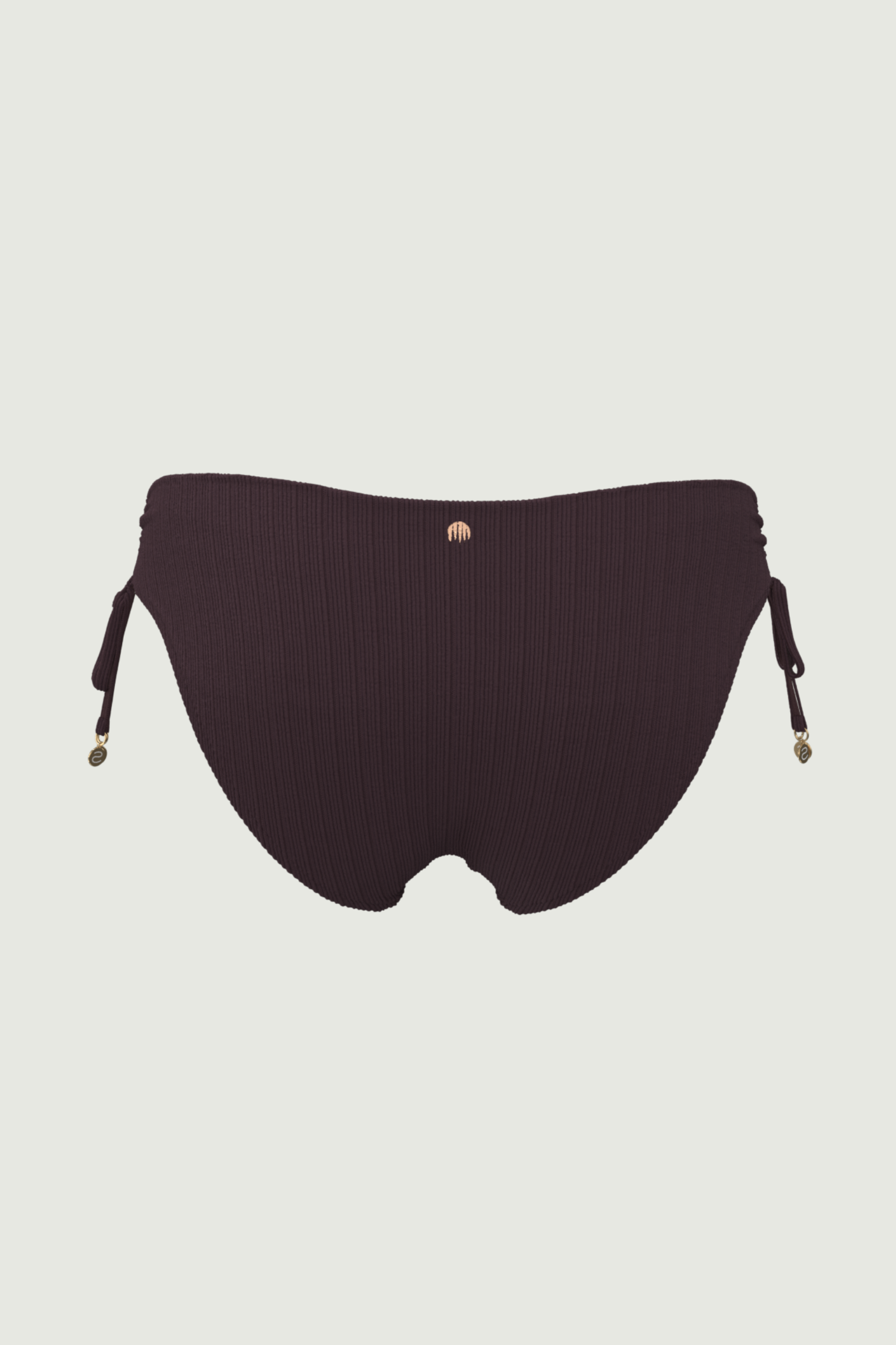 Sculpt a sleek line with the Maja Ruched Side Tie Mid Rise Pant. Delicate side ties create gentle cinching that flatters the hips, while soft ruching adds subtle texture and movement. Sitting comfortably at mid-rise with full classic coverage, this piece is crafted from solid fabric with horizontal mini ribbing effortless sophistication that pairs perfectly with any Maja top.